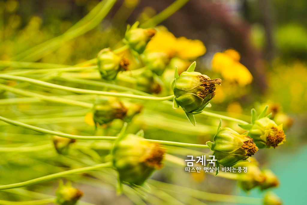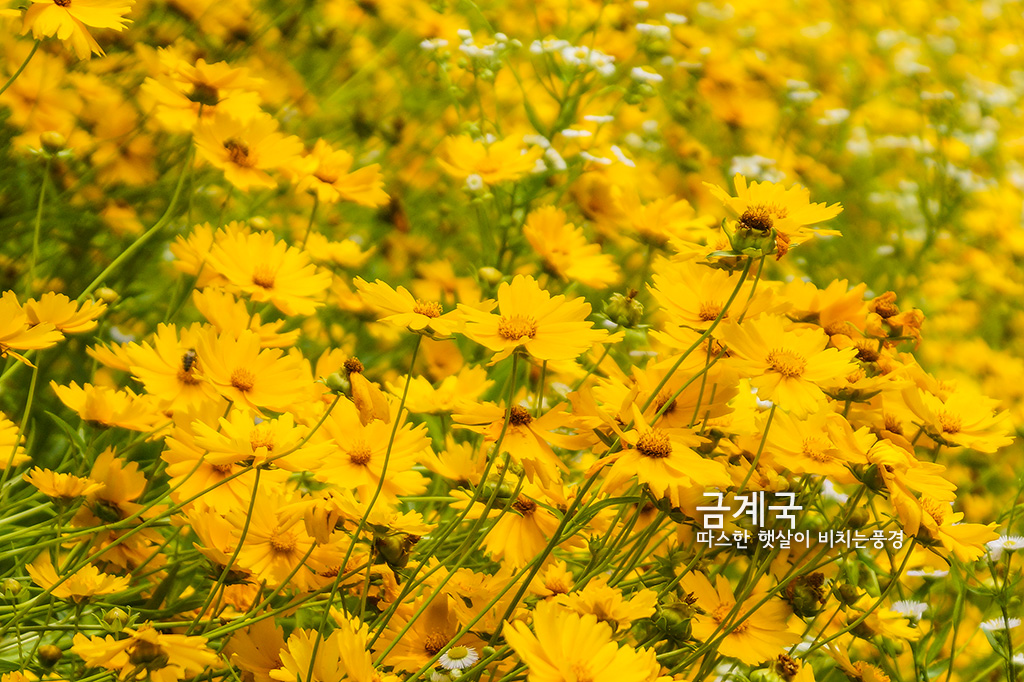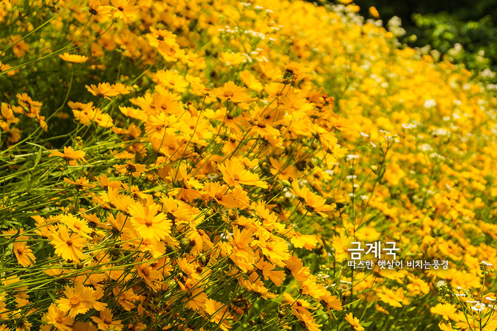 금색으로 색깔이 예쁜 금계를 닮았다해서 금계국으로 이름붙여졌습니다. 이름에서 볼수있는 것처럼 국화과의 꽃