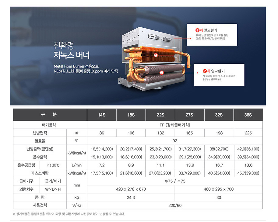 대성 친환경 콘덴싱 보일러의 저녹스 버너 열교환기(최신제품은 사양이 바뀌었을수 있습니다)