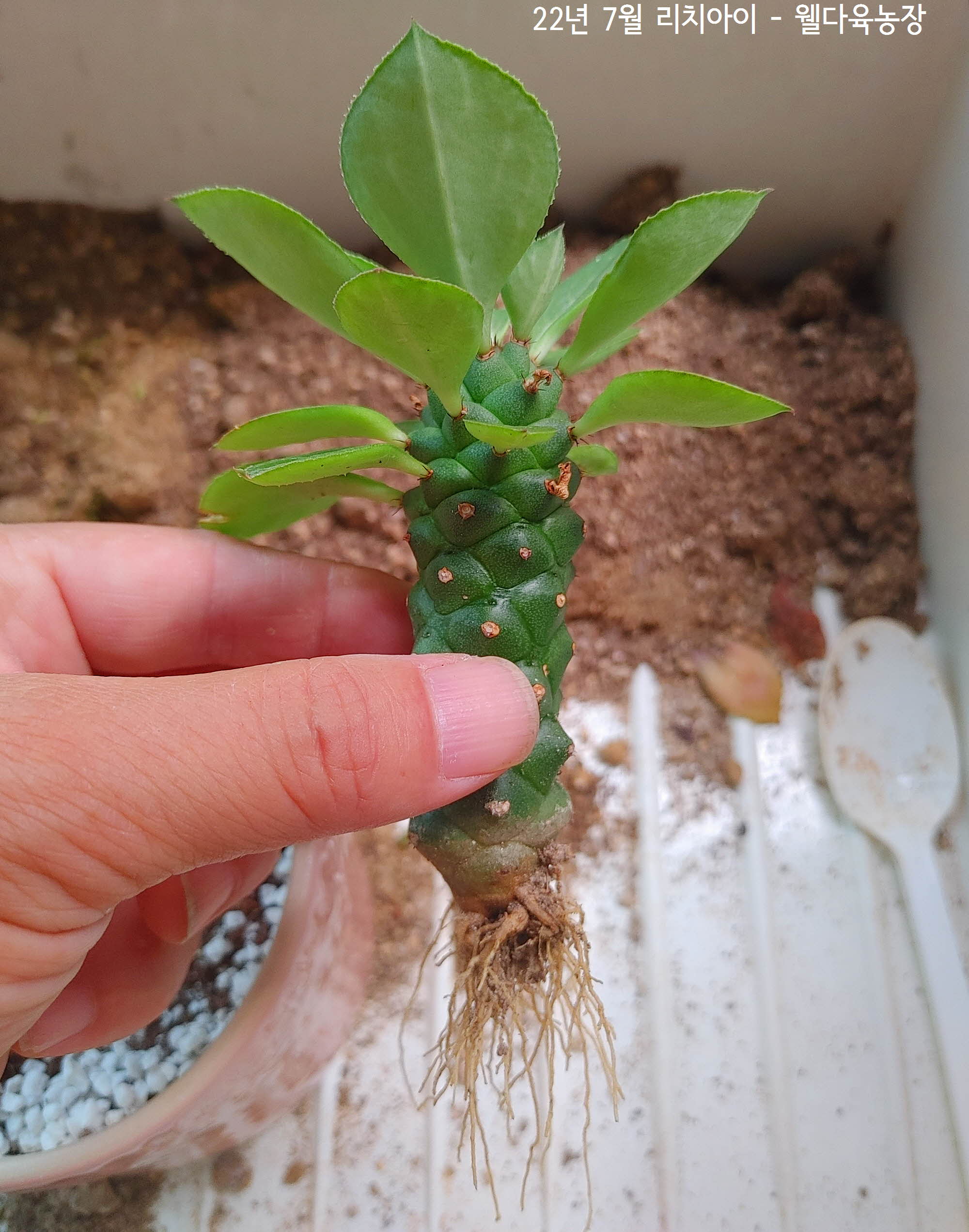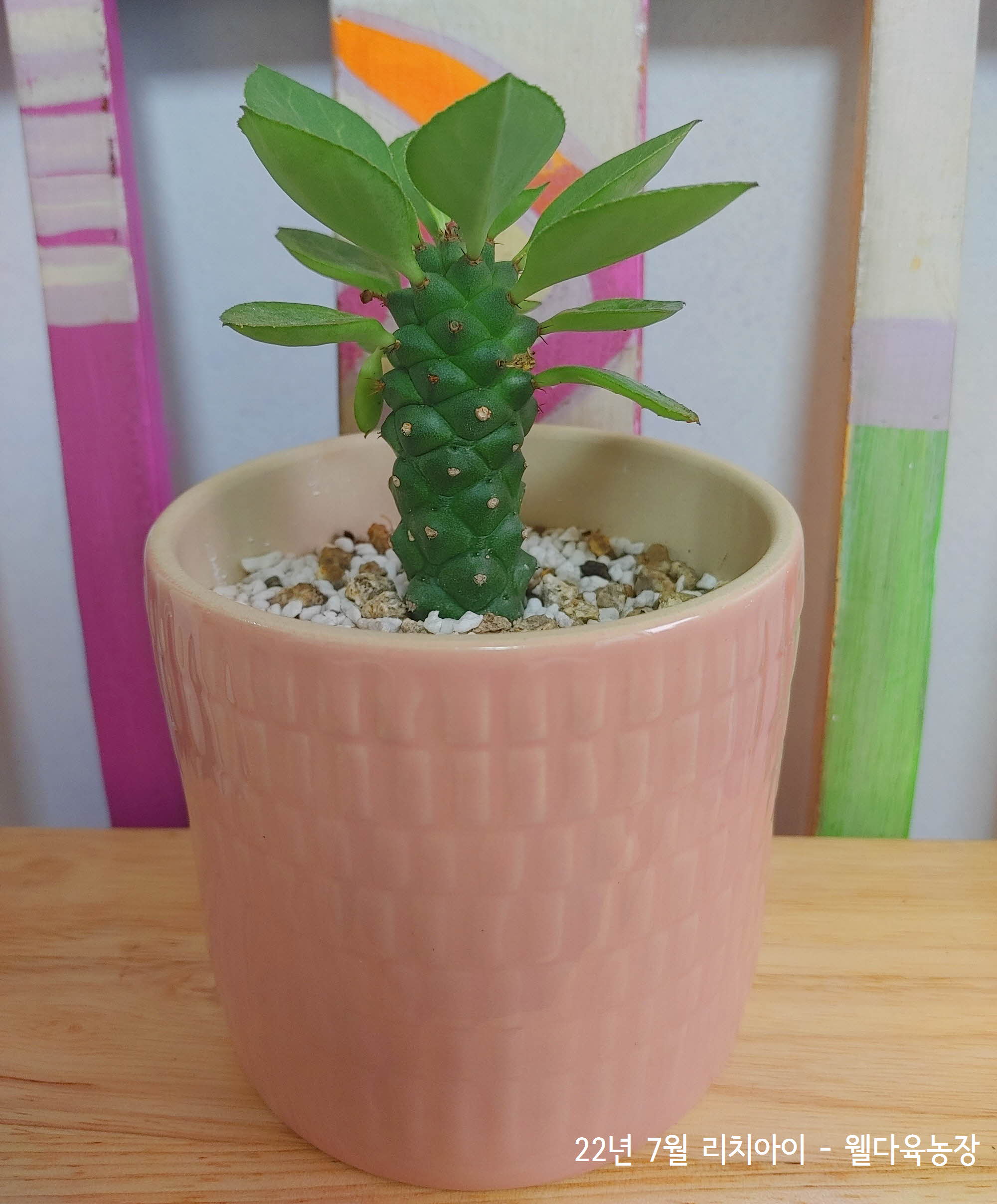 다육이 세계로 끌어들인 괴마옥과 닮은 모습에 눈길이간 리치아이는 괴마옥과 같은 유포르비아속으로 다른 다육식물처럼 섬세한 선들을 가지고 있습니다.