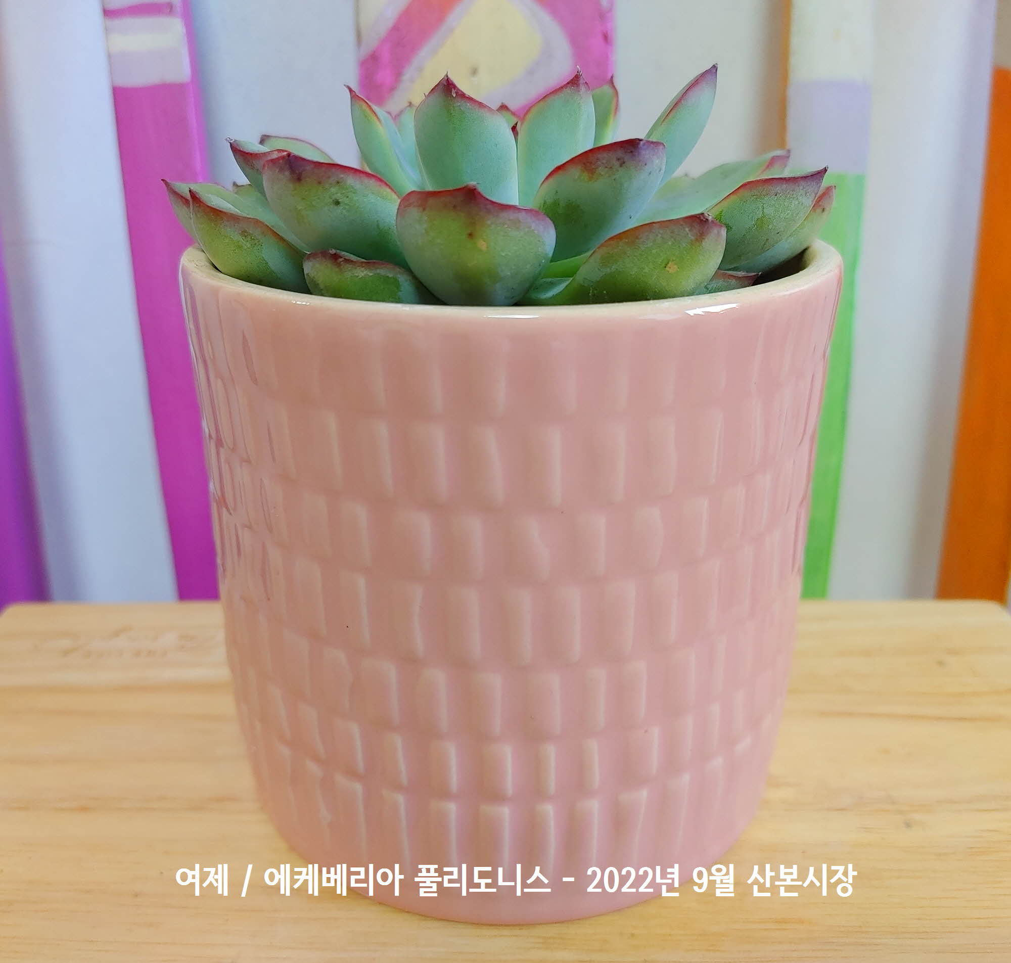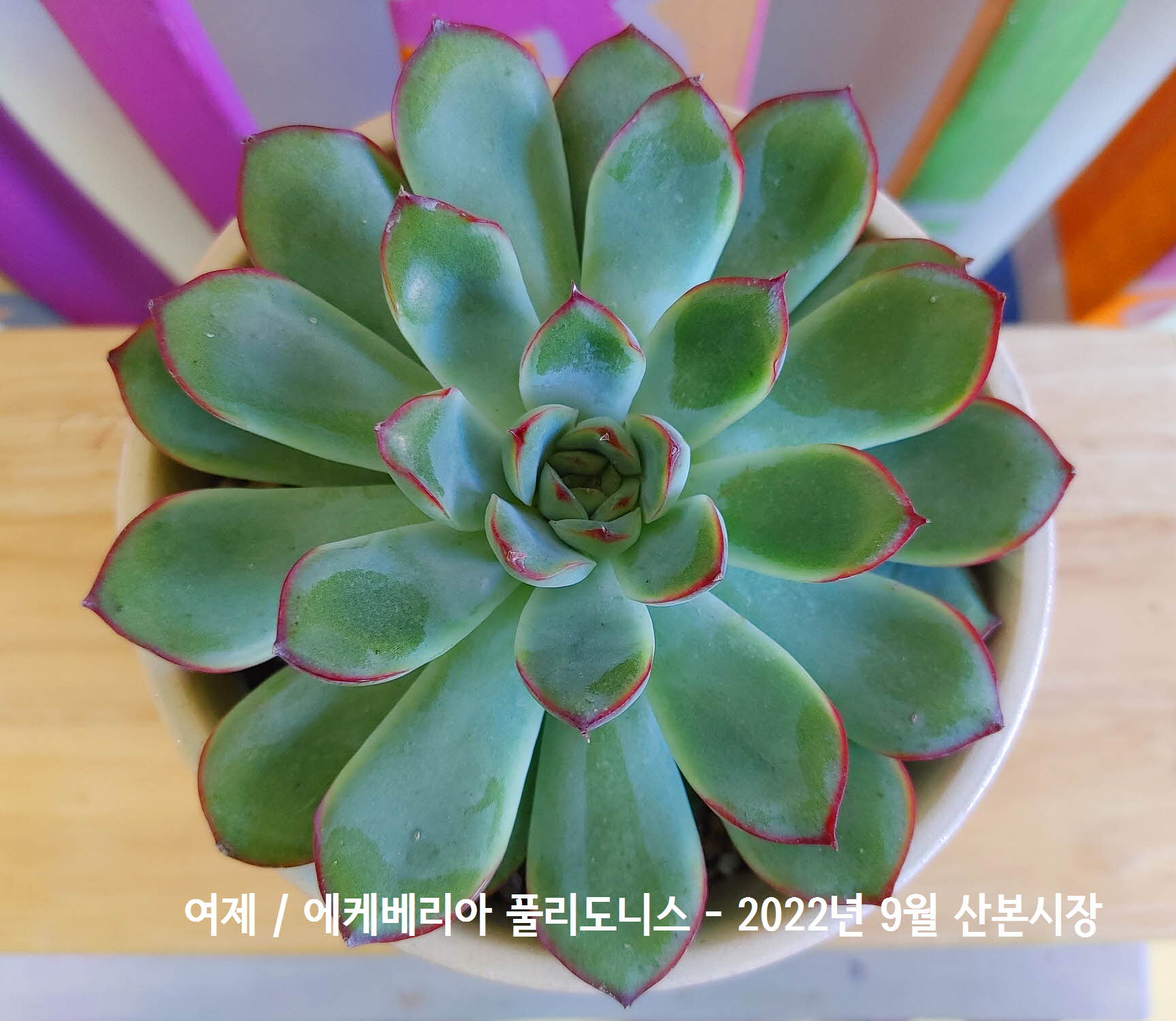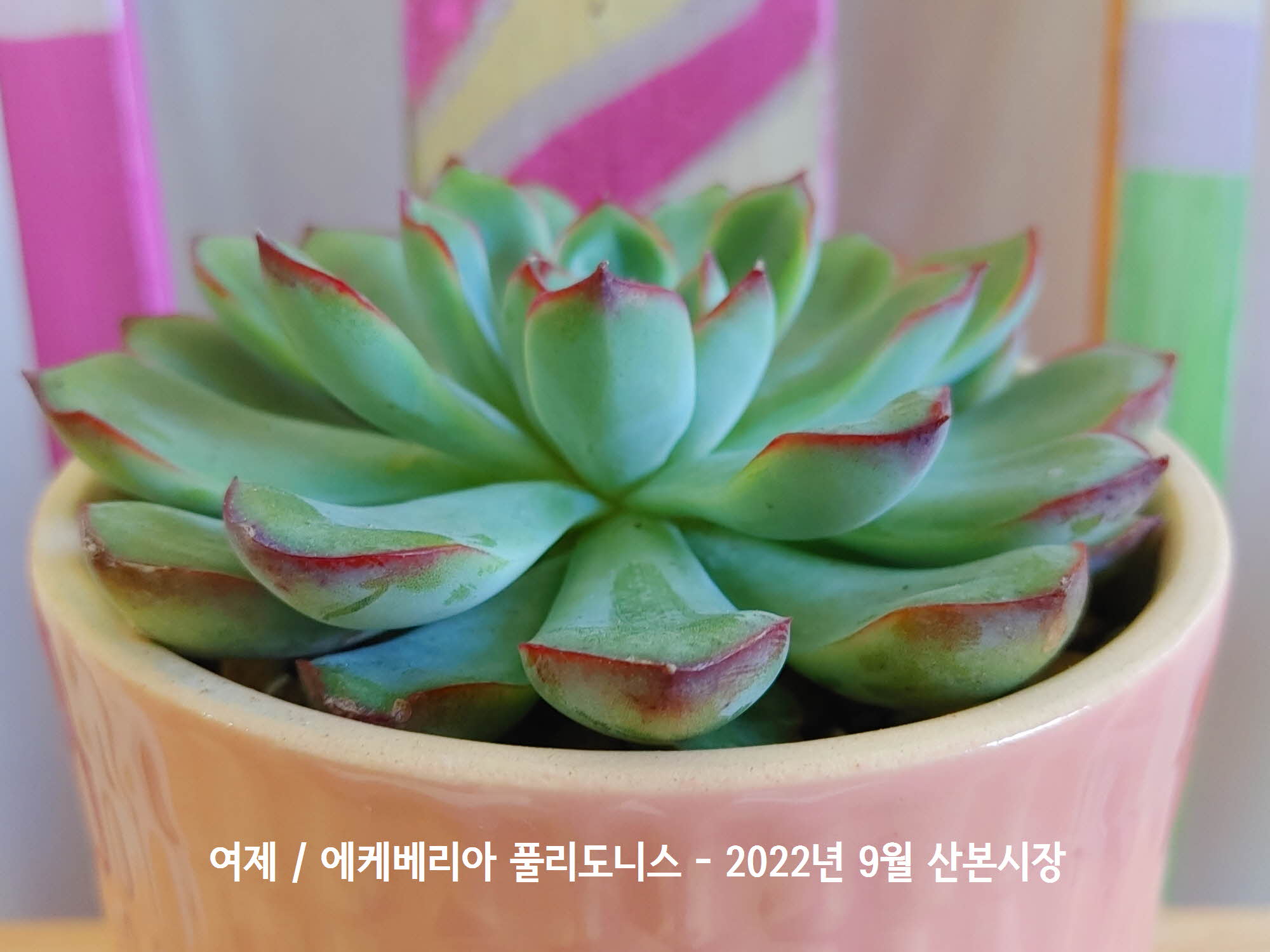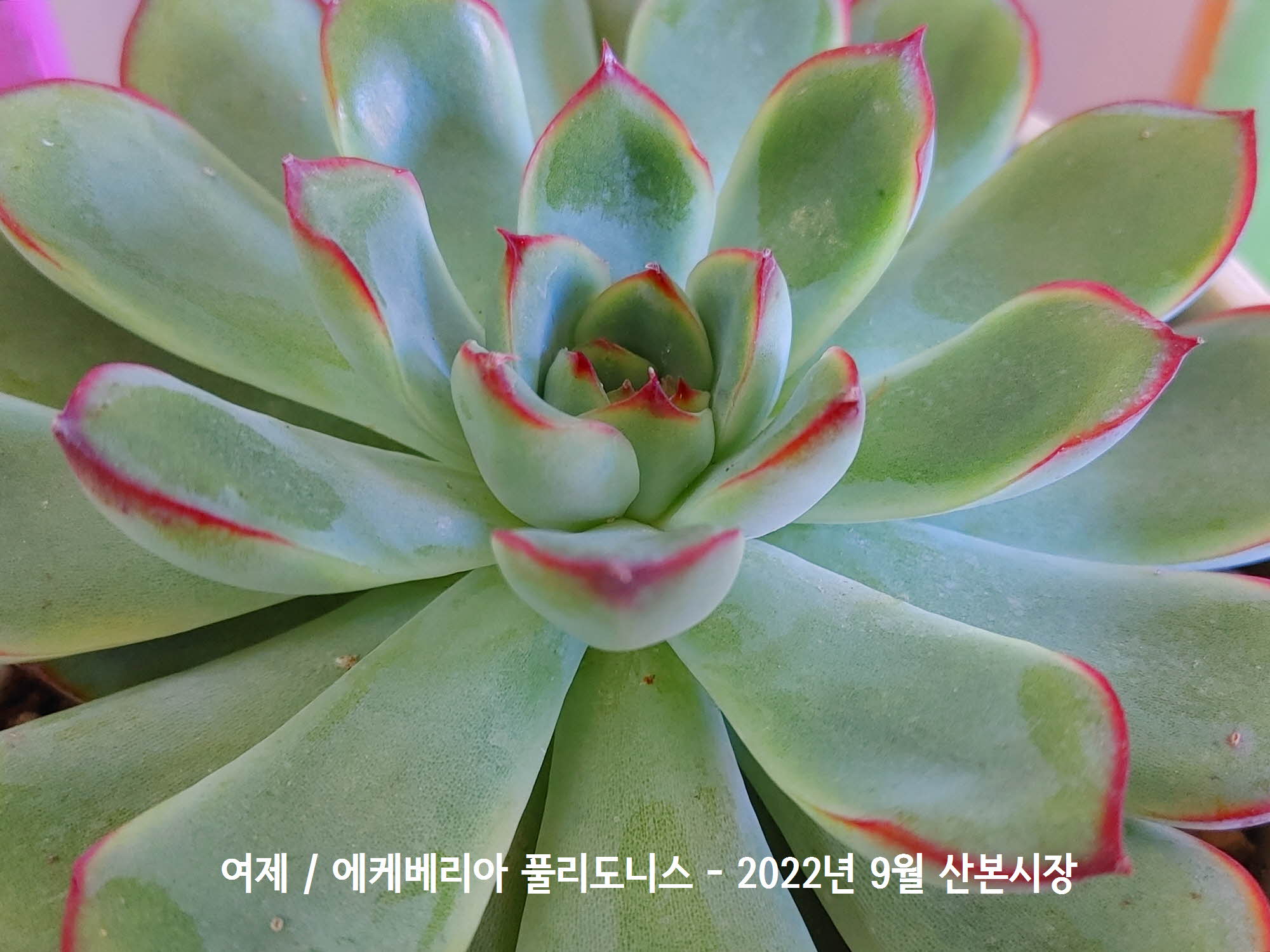 손톱끝에 남은 봉숭아 끝물같은 무늬를 가진 에케베리아 풀리도니스 산본시장 화원에서 구입할때 쓰여진 이름은 디테일
