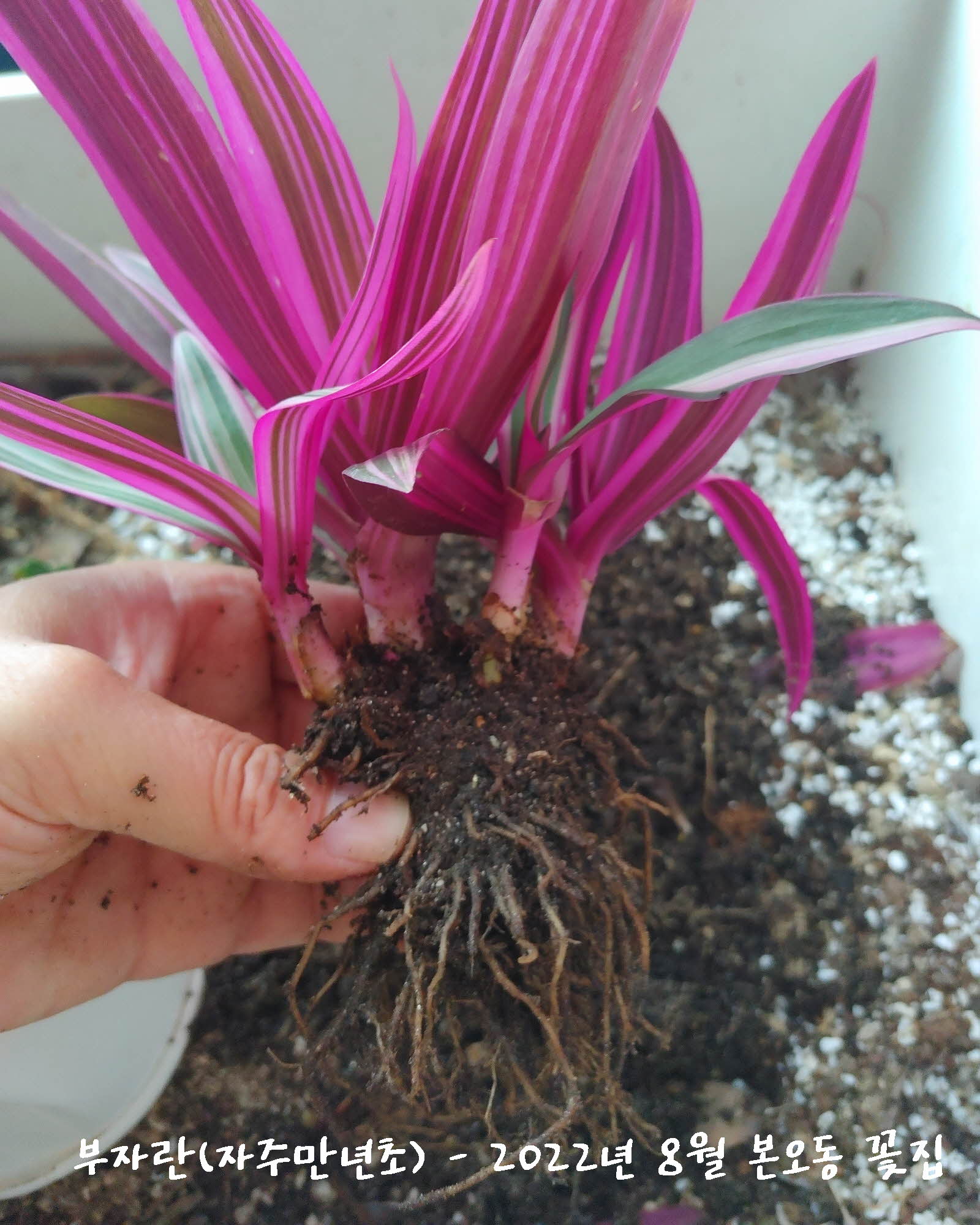 보라색이 멋있는 부자란 분갈이중에 보게된 뿌리들