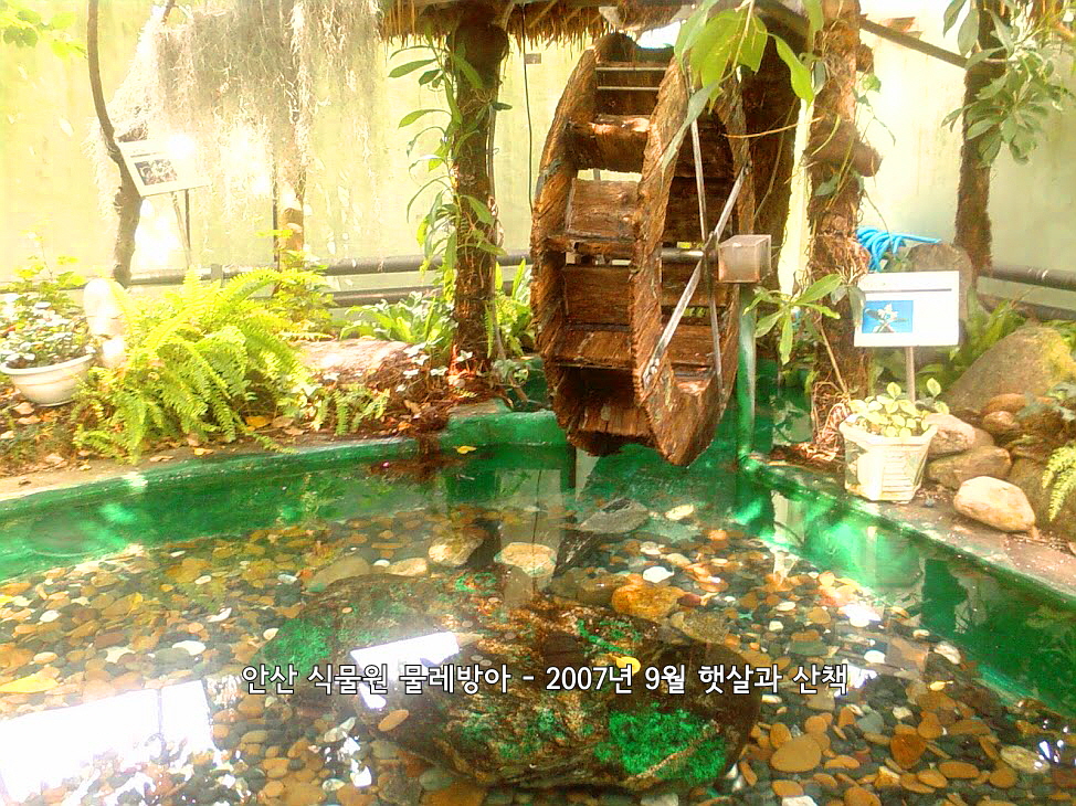 안산 식물원 열대관에 있었던 물레방아 가끔 사람들이 동전을 던지던 곳 지금은 사라짐 2007년 9월