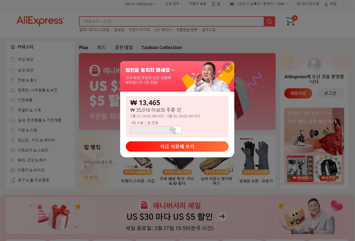 최근에 마동석을 모델로 쓰고 있는데 화교가 발을 못붙힌 우리나라지만 글로벌시대에 들어온 중국 상인으로 알리익스프레스는 중국대륙에서는 판매하지않고 해외의 글로벌만 상대하는 쇼핑몰