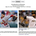 세인트루이스 카디널스 : 피츠버그 파이어리츠 메이저리그 와일드카드 야구경기 신시내티를 꺽고 올라온 피츠버그와 세인트루이스 카디널스의 디비전시리즈 개막.. 본격적인 가을야구로 접어든 메이저리그의 기대감을 가지며 열리는 경기 양팀 선발투수는 A.J 버넷과 아담 웨인라이트 양팀 선발투수 MLB 문자중계 게임데이 이미지 출처 - MLB.COM 경기일정 - 10월4일 06:00 2013 메이저리그 아프리카 TV 실시간보기 http://noleter.kr/638 (생중계 시간에만 활성화) 유튜브 실시간 중계방송 보기 - SPOTV http://www.youtube.com/user/spotv 다음에서 보기 - http://noleter.kr/639 http://cast.sports.media.daum.net/nahu..