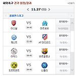 제니트:아틀레티코마드리드 챔피언스리그 축구경기 UEFA 챔피언스리그 11월 27일(수) 제니트 vs 아틀레티코 마드리드 02:00 TV중계 포르투 vs 오스트리아 빈 04:45 셀틱 vs AC 밀란 04:45 아약스 vs 바르셀로나 04:45 TV중계 슈테아우어 vs 샬케 04 04:45 바젤 vs 첼시 04:45 녹화중계 11:00아스널 vs 마르세유 04:45 녹화중계 07:00도르트문트 vs 나폴리 04:45 TV중계 11월 28일(목) CSKA 모스크바 vs 바이에른 뮌헨 02:00 TV중계 맨시티 vs 플젠 04:45 레버쿠젠 vs 맨유 04:45 TV중계 샤흐타르 vs 레알 소시에다드 04:45 레알 마드리드 vs 갈라타사라이 04:45 TV중계 유벤투스 vs 코펜하겐 04:45 안더레흐트 v..